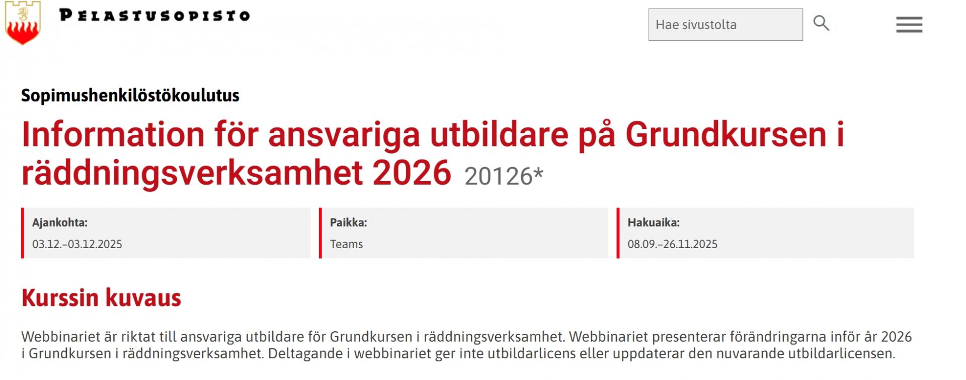 Information för ansvariga utbildare på Grundkursen i räddningsverksamhet